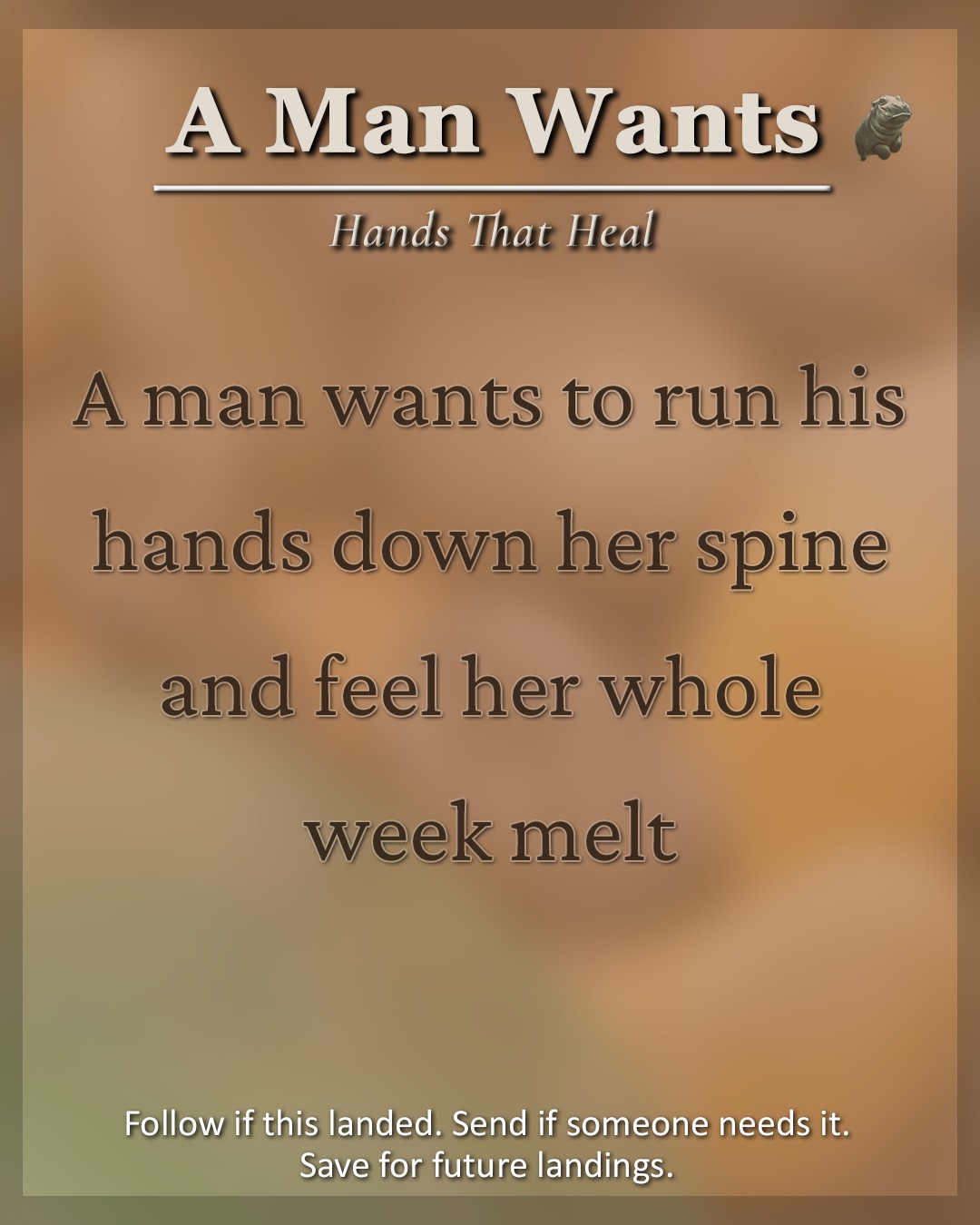 For the woman whose whole body exhales when she’s finally touched with care—