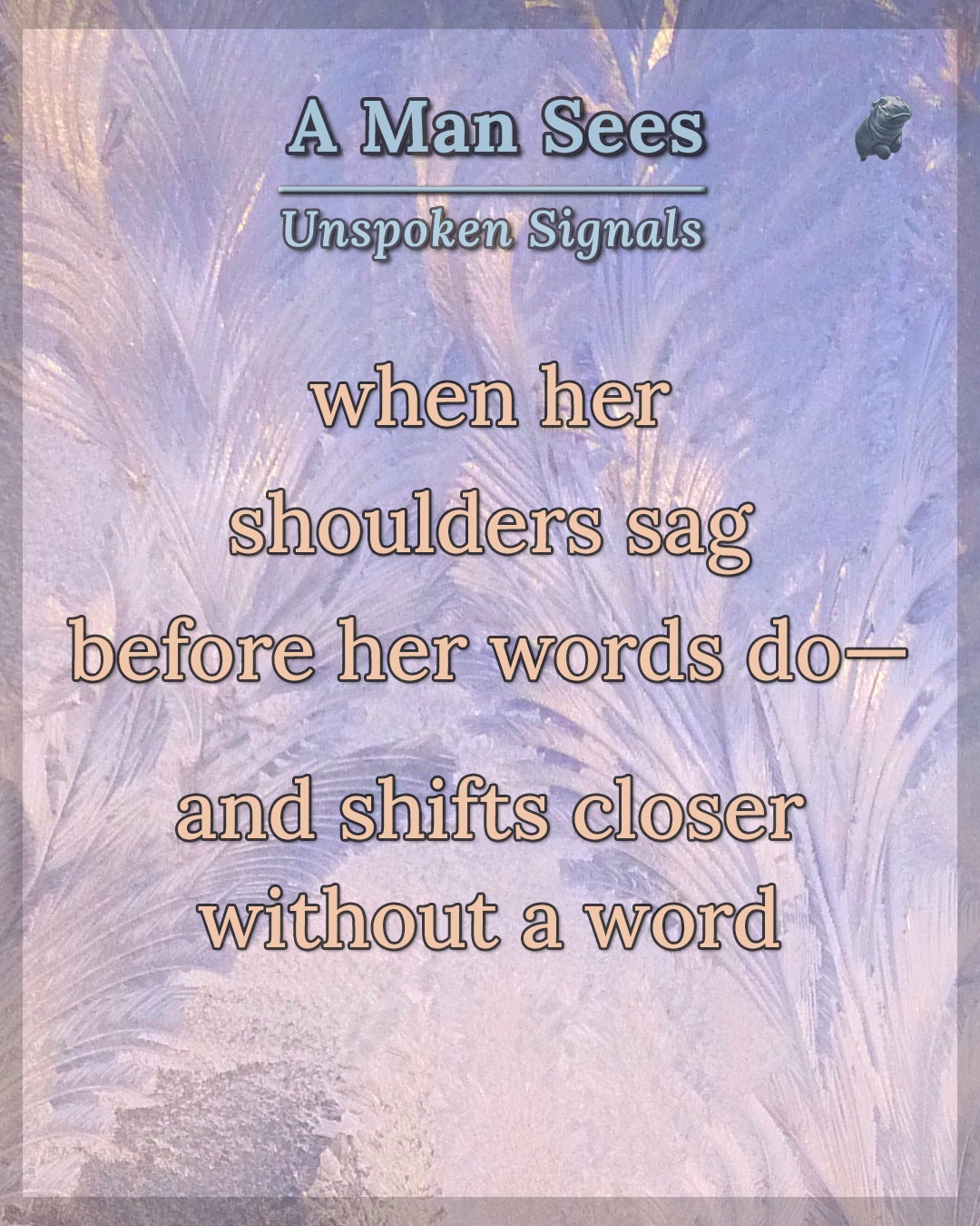 – speaks through presence, not performance